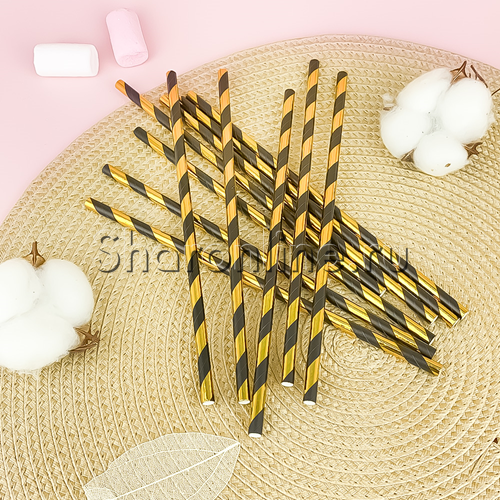 Трубочки для коктейля "Полосы" черный/золото 12 шт